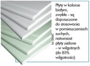 Płyty typu FH2. Ten rodzaj płyt również charakteryzuje się podwyższoną odpornością na ogień. Stosuje się je jednak we wnętrzach, gdzie okresowo (do 10 godzin na dobę) panuje podwyższona wilgotność powietrza, która dochodzi nawet do 85%.
