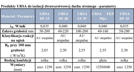 • warstwy górnej - maty URSA DF 40, ( DF 35, SF 39, DF 43),