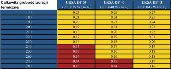 izolacyjności z zastosowaniem maty URSA DF 40.
