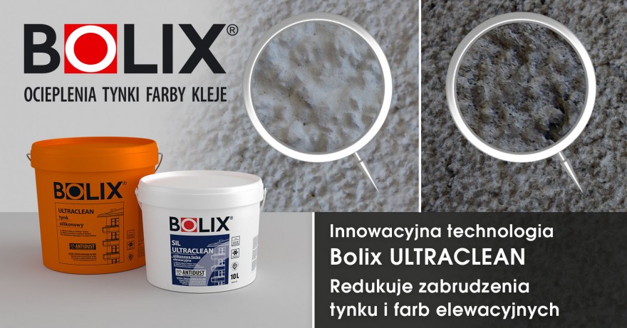 Tynk silikonowy BOLIX ULTRACLEAN to silikonowa masa tynkarska do ręcznego i maszynowego wykonania ochronnych i dekoracyjnych, cienkowarstwowych wypraw tynkarskich w ociepleniach ścian zewnętrznych budynków w technologii ETICS  na styropianie i wełnie mineralnej. Tynk można również stosować do dekorowania odpowiednio przygotowanych mineralnych podłoży ściennych takich jak: tynki cementowej, cementowo-wapienne, czy beton. Tynk jest dedykowany do zastosowania na elewacjach zewnętrznych budynków indywidualnych, jednorodzinnych oraz wewnątrz pomieszczeń. Technologia Ultracelan radykalnie ogranicza przyciąganie brudu, dzięki czemu pozwala cieszyć się czystą i świeżą wyprawą tynkarską w dłuższym okresie.