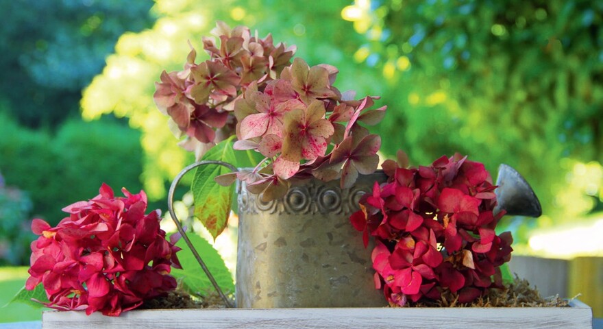 Aluminiowe wiaderka oraz rynienki w różnych rozmiarach to od kilku sezonów niesłabnący trend w kwiatowych aranżacjach. Od swoich gospodarczych protoplastów różnią się szlachetniejszym materiałem oraz atrakcyjnym designem. Wyraźne nawiązanie do rustykalnych wzorców sprawia, że dobrze się w nich czują zerwane w wiejskim ogrodzie długo kwitnące onętki (popularny kosmos), astry czy aksamitki. Do ich oprawy mogą posłużyć także emaliowane dzbanki. Ożywią naszą jesienną aranżację nie tylko ciekawą formą, ale również wyrazistym kolorem.