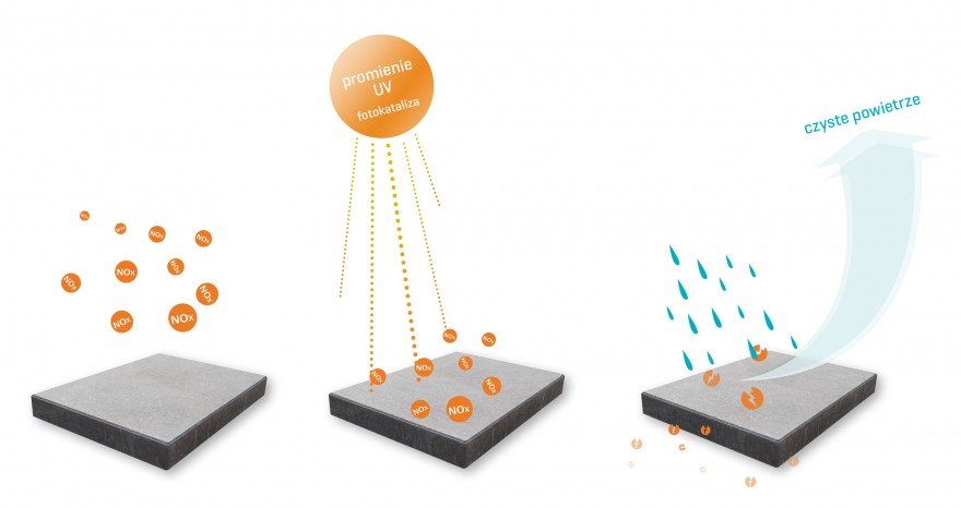 Biorąc przykład z naszych Duńskich partnerów prezentujemy Państwu produkt, który jest w stanie pozytywnie wpływać na jakość powietrza którym oddychamy. Produkty oznaczone symbolem NOxOFF (kostka brukowa i płyty chodnikowe) oczyszczają powietrze!