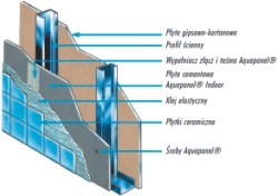 Aquapanel to płyta cementowa, w 100% odporna na wilgoć i bezpośrednie działanie wody.