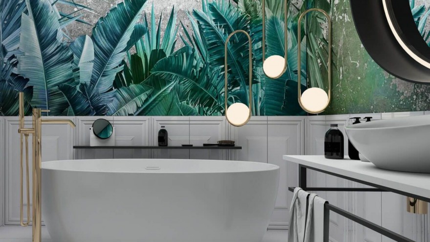 Zazwyczaj malowano je na biało lub beżowo, ewentualnie w innych jasnych kolorach: błękicie czy brzoskwini. Taką powierzchnię wykańczano też malowaną lub nanoszoną szablonem bordiurą. W łazience art deco sprawdzą się więc okładziny ścienne zarówno jednobarwne, jak i zdobione dekorami. Bez problemu kupimy płytki zdobione printami inspirowanymi wachlarzami, pawimi piórami czy orientalnymi deseniami – idealne będą te z dodatkami złotego koloru. Ściany w oryginalnych wnętrzach art deco pokrywano równie chętnie luksusowym jasnym drewnem – jego imitacje również znajdziemy w ofercie producentów płytek ceramicznych. W aranżacjach sprawdzą się płytki w kształcie cegiełek, rybiej łuski, rombów i trójkątów, na topie są też kształty heksagonalne. W ofercie rynkowej znajdziemy też płytki imitujące boazerię angielską – idealne dla stylowej łazienki. Dobrym tłem dla aranżacji luksusowej łazienki w stylu art deco są też płytki kamienne oraz gres imitujący kamień – tego typu okładziny zapewnią poczucie wyjątkowości wnętrza i doznania luksusu W oryginalnych wnętrzach art deco popularnością cieszyły się także tapety papierowe o wzorach geometrycznych i kwiatowych. Aktualnie desenie tapet z tamtych lat wracają – przenoszone są również na nowoczesne tapety winylowe, które śmiało można zastosować we współczesnej łazience.