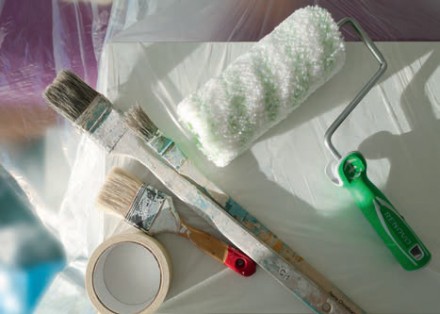 Wpływ na dobór narzędzi ma struktura malowanej powierzchni oraz to, jaką wybraliśmy farbę. Nigdy nie kupujmy niskiej jakości pędzli – podczas malowania będą pozostawiać włosie na ścianach. Natomiast dobór wałków nieodpowiednich do danej faktury ściany może utrudniać równomierne rozprowadzenie farby. Do farb rozpuszczalnikowych powinniśmy zakupić pędzle i wałki z naturalnych materiałów, a do pozostałych – z syntetycznych lub mieszanych. Do zagruntowania ścian przydatny będzie pędzel ławkowiec. Kupując wałek, zwróćmy uwagę, czy włosie jest dobrze osadzone i nie wypada z wałka. Długość włosia powinna wynosić co najmniej 5 cm. Wałków z krótkim włosiem (4-13 mm) używamy, gdy ściany są gładkie. Z kolei do chropowatych powierzchni wybierzmy pędzel o dłuższym włosiu lub wałek o dłuższym runie. Szerokość wałka do malowania dobieramy pod kątem powierzchni, jaką mamy do pomalowania. Im jest ona większa, tym szerszy wałek (12, 15, 18, 25 cm). Wąskie wałki (5, 8 cm) pomogą nam dotrzeć do narożników i innych zakamarków. Niezbędne do malowania są także taśmy i folie malarskie oraz kuwety – aktualnie dostępne są jednorazowe wykonane z grubej folii.