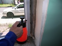 Przed przystąpieniem do aplikacji piany należy zwilżyć podłoże wodą (nie zwilżamy ramy), aby piana uzyskała właściwą strukturę i elastyczność.