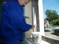 Po usunięciu nadmiaru piany przystępujemy do jej zabezpieczenia przed promieniami UV, nakładając na nią elastyczny i malowany uszczelniacz np. akryl do G-K, który charakteryzuje się dużym przystosowaniem do ruchu, bardzo dobra przyczepnością oraz łatwością obróbki. Akryl ten można stosować również na zewnątrz i malować ogólnie dostępnymi farbami stosowanymi w budownictwie.
