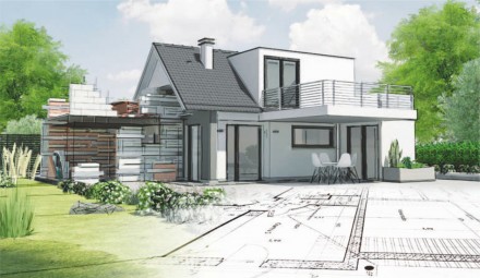 Znając uwarunkowania działki, możemy przystąpić do poszukiwań odpowiedniego gotowego projektu domu. Możemy również zdecydować się na współpracę z architektem, który przygotuje indywidualny projekt. Niezależnie od tego, na jaki wariant się zdecydujemy, ważne jest, aby określić potrzeby wszystkich domowników zarówno te bieżące, jak i przyszłe. Unikniemy w ten sposób sytuacji, kiedy powierzchnia domu będzie niewystarczająca. Pamiętajmy, że projekt wymaga adaptacji, czyli dostosowania do warunków terenowych. Przeprowadza ją architekt z odpowiednimi uprawnieniami. Do jego zadań należy wykonanie projektu zagospodarowania działki. Określa on więc granice działki lub terenu, usytuowanie, obrys i układy istniejących oraz projektowanych obiektów budowlanych, sieci uzbrojenia terenu, sposób odprowadzana lub oczyszczania ścieków, układ komunikacyjny czy zieleni. Sprawdza zgodność projektu z warunkami MPZP lub WZ, dostosowuje również fundamenty do warunków gruntowo-wodnych oraz dopasowuje projekt domu do uwarunkowań lokalizacyjnych pod względem stref obciążenia wiatrem i śniegiem oraz ewentualnych spadków terenu. Projektant może także wprowadzić zmiany w projekcie domu, dostosowując go do potrzeb mieszkańców.