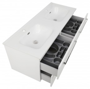 Uzupełnieniem kolekcji są umywalki ceramiczne o szerokościach 60, 80, 100 i 120cm o owalnym, łagodnym kształcie
