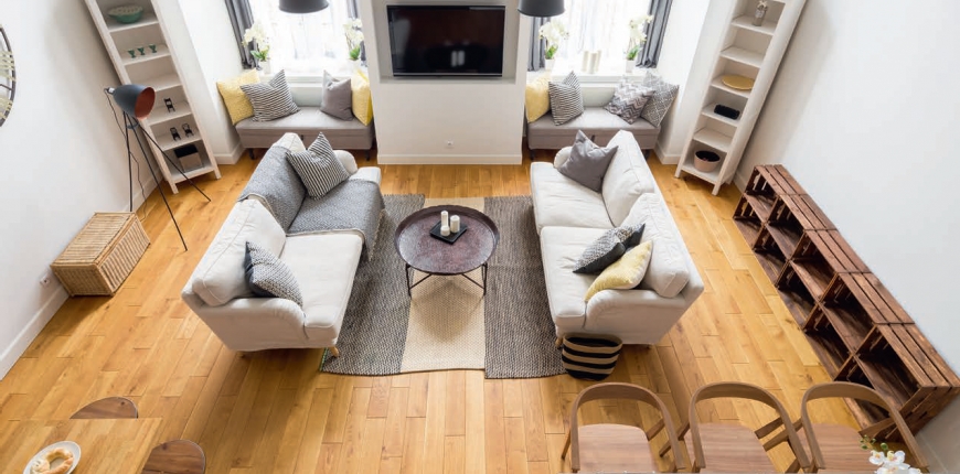 Zaletą szybkiego parkietu jest również możliwość zobaczenia już przy zakupie efektu finalnego. Posadzka często jest bowiem fabrycznie wykończona. Widzimy więc od razu, czy odpowiada nam bardziej wybrane przez nas drewno w wariancie lakierowanym czy olejowanym, błyszczące czy matowe, bielone, a może przyciemniane. Łatwiej więc będzie dopasować drewnianą okładzinę do naszych preferencji stylowych i aranżacyjnych. Finishparkiet wyróżnia też bogactwo gatunków drewna zastosowanego na licu oraz atrakcyjne wzornictwo. Na wierzchnią warstwę wykorzystuje się zarówno drewno krajowe, jak i egzotyczne. Do najczęściej wybieranych należy okładzina dębowa w różnych wariantach. Z gatunków rodzimych do efektownych należy także dwuwarstwowy parkiet jesionowy, grabowy lub orzechowy. Równie popularny jest wykonany z drewna egzotycznego – eleganckiego teku, miodowego merbau czy klimatycznego wenge. Drewno może być szczotkowane, co daje efekt postarzanej podłogi z podkreślonym usłojeniem drewna i jego strukturą. Warto wybrać parkiet fazowany czterostronnie, który dzięki załamaniu krawędzi ze wszystkich stron nadaje podłodze wyrazisty charakter. Ten rodzaj obróbki doskonale uwypukla wykończenie parkietu olejem lub olejowoskiem. Deszczułki mogą być bejcowane, co pozwala nam uzyskać pożądaną barwę drewna, jednak należy się liczyć z tym, że gdy będziemy przeprowadzać remont, to podczas cyklinowania drewno powróci do wyjściowego koloru. Parkiety dwuwarstwowe wykonuje się także z warstwą licową z thermodrewna. Dzięki czemu uzyskujemy materiał nie tylko efektowny wizualnie, ale również o doskonałych parametrach technicznych. Do wyjątkowo dekoracyjnych należy też finishparkiet z drewna wędzonego. Podczas tego procesu chemicznego drewno ciemnieje, a jego barwa zmienia się w całym przekroju elementu – podobnie jak w przypadku obróbki termicznej.