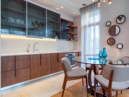 Przeszklone szafki najczęściej stanowią propozycję składową górnej zabudowy. Tu bowiem wrażenie przestronności, ażurowości i lekkości jest istotne. Witryny dają możliwość zastosowania dekoracyjnego oświetlenia w kuchni – wewnątrz mebla montuje się oświetlenie LED punktowe lub liniowe. Poza przeszkleniami drzwiczek często wyposażone są także w delikatne szklane półki, co estetycznie rozprasza światło – podkreślając całą zawartość szafki, a jednocześnie dodatkowo doświetla pomieszczenie. Witrynki dają także duże pole do stylowej aranżacji. Możliwość prezentacji efektownej zastawy, dekoracyjnych serwisów kawowych i herbacianych, wartościowej porcelany oraz szkła, a także atrakcyjnych przedmiotów sprawia, że kuchnia staje się pomieszczeniem ekskluzywnym. Producenci witryn oferują w tym celu praktyczne wyposażenie i akcesoria ułatwiające prezentację naczyń w witrynie. W niektórych systemach szafek znajdziemy stojaki na talerze, leżaki na wino czy uchwyty na kieliszki. I chociaż meble te wywodzą się z kuchni tradycyjnych, to bardzo dużą popularnością cieszą się również w stylizacjach nowoczesnych, minimalistycznych, w których szkło odgrywa ważną, jeśli nie przodującą, rolę. Witryny są szczególnie pożądane w otwartych kuchniach, gdzie stała ekspozycja tego pomieszczenia wymaga wyższej rangą estetyki. Modne trendy z wykorzystaniem witrynek to szklane, nadblatowe szafki ścienne – długie „jamniki”, stanowiące monolityczną, ale jednocześnie lekką zabudowę kuchni. Nowoczesne przeszklone szafki często wyposażone są w niestandardowe systemy otwierania, a szklane tafle drzwi pozbawione są niemal zupełnie widocznej ramy. W otwartych wnętrzach, gdzie kuchnia stanowi aneks, stosuje się zazwyczaj witryny w formie słupków lub komód, które mają dodatkowo za zadanie wyznaczenie podziałów na strefy.